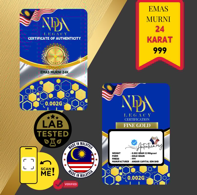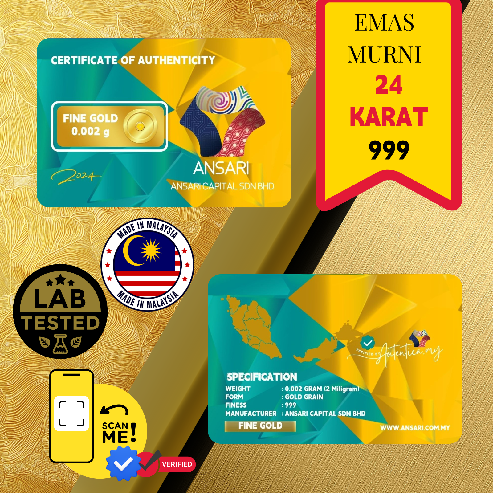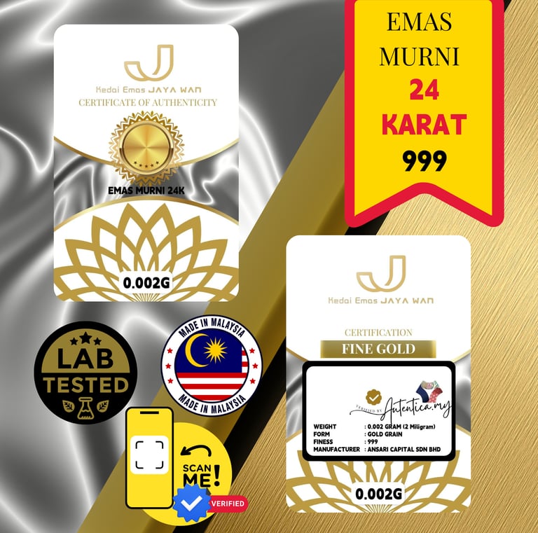 Setiap emas mini dihasilkan mengikut piawaian kualiti yang ketat dari segi ketulenan dan kemasan, bagi memastikan kepuasan anda.